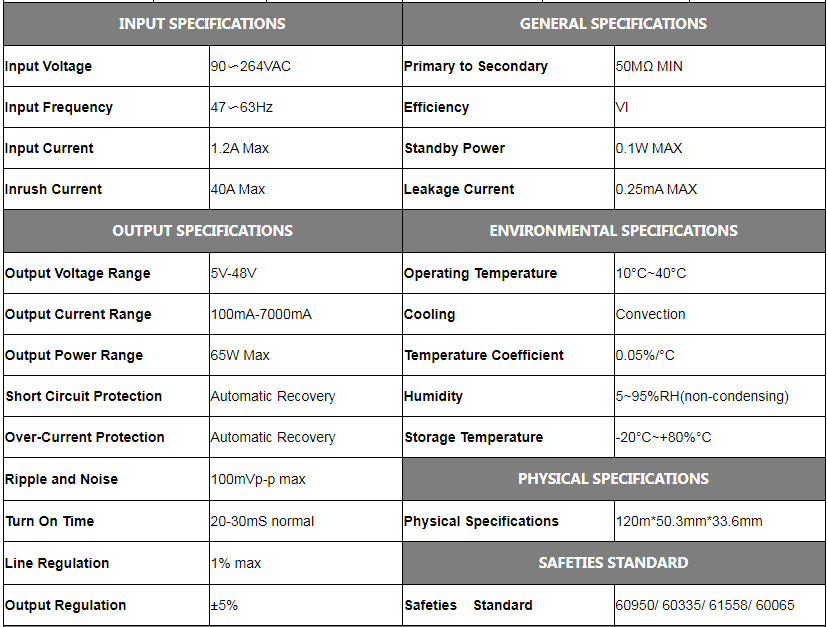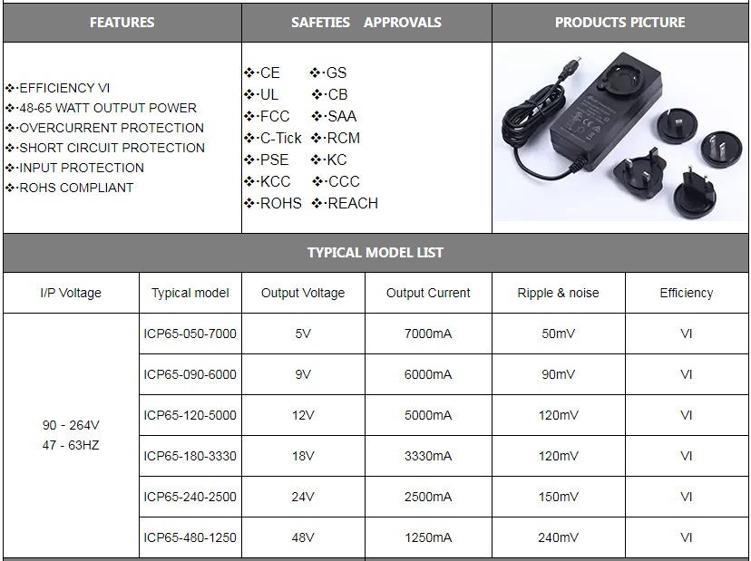 65w系列转换头电源适配器 18V3.3A 24V2. AC插脚可拆卸电源主体