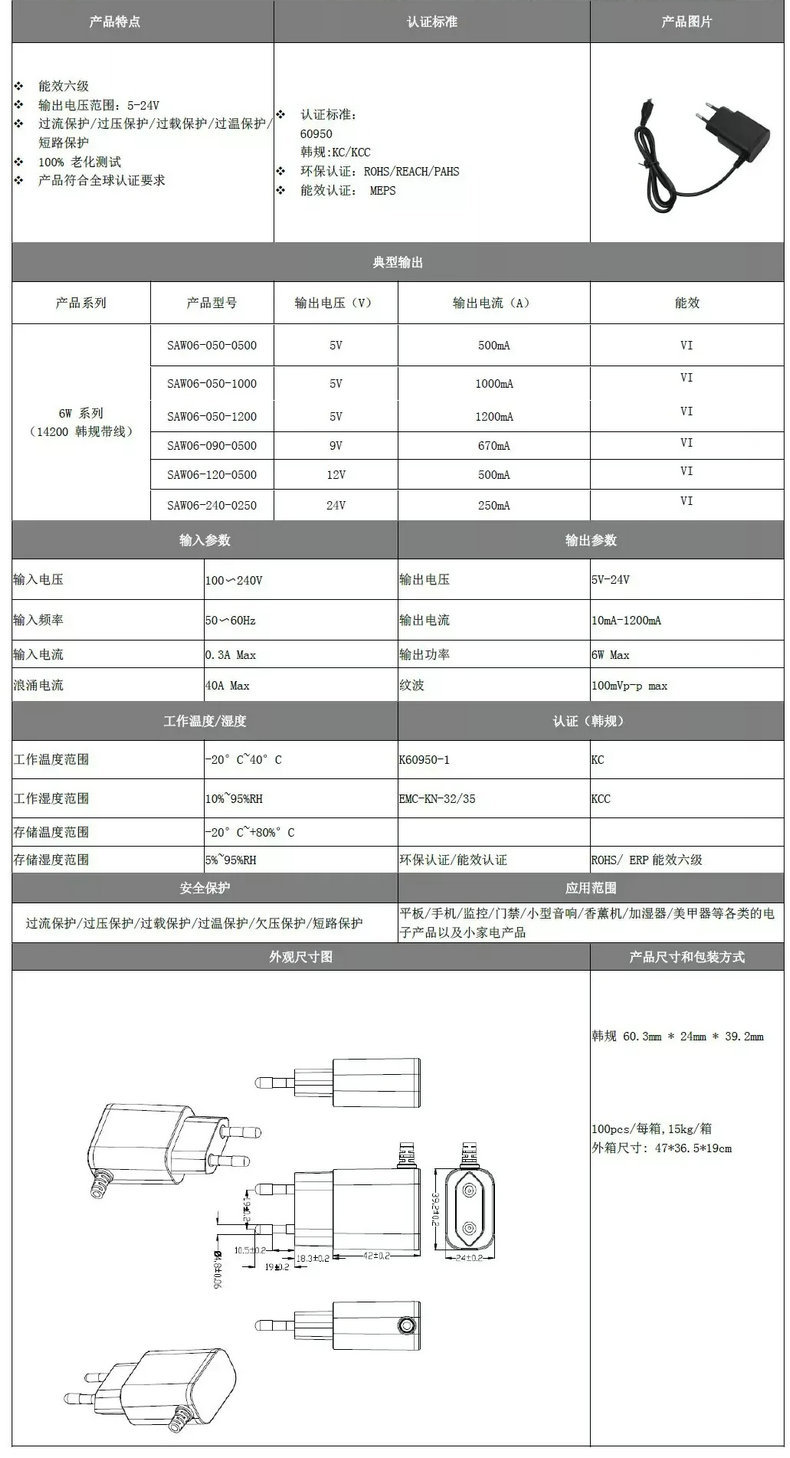 插墙式电源适配器 14000(6w系列) 14000-KR Plug