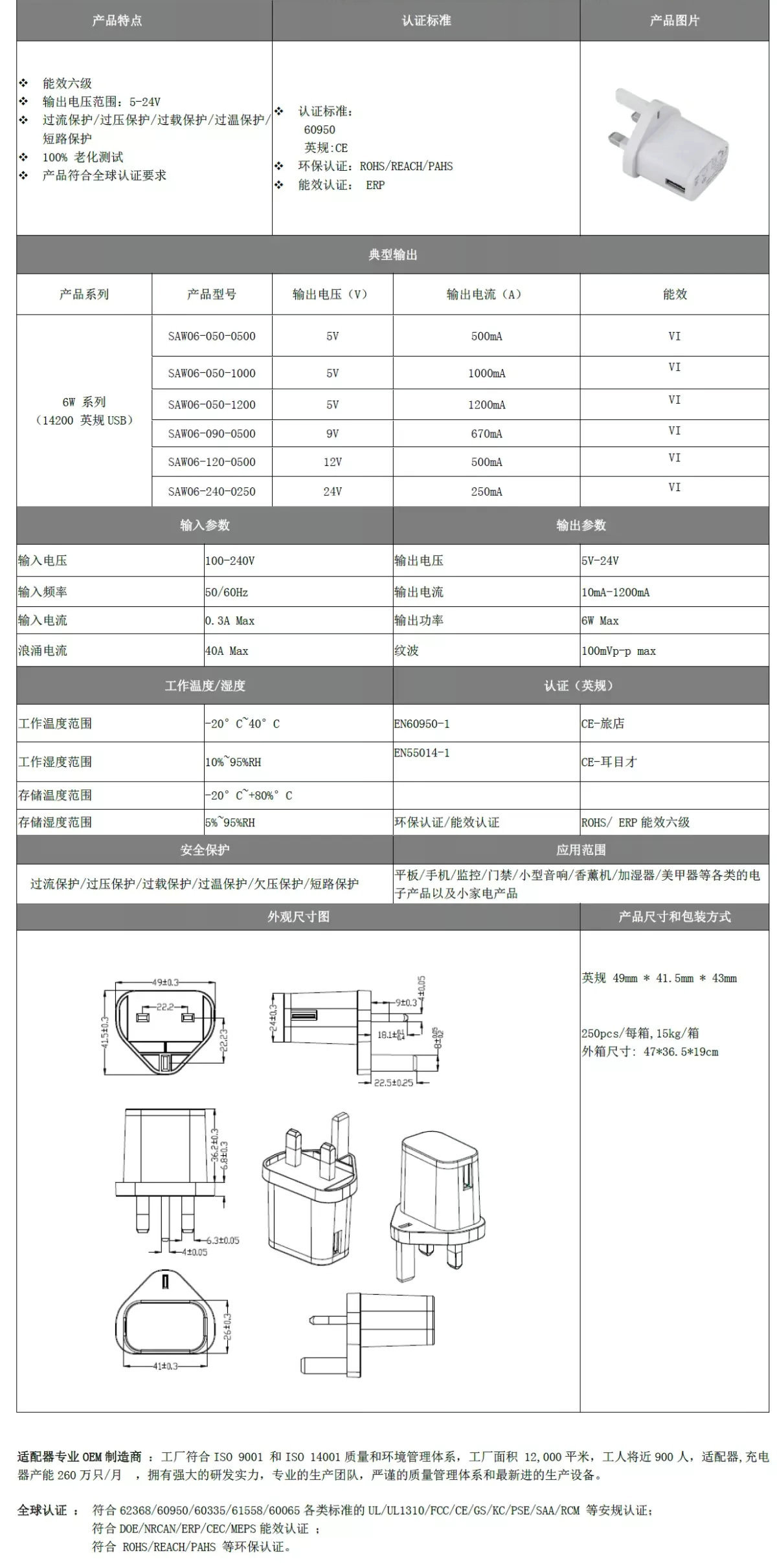 插墙式电源适配器 14200(6w系列)14200-UK Plug(USB)