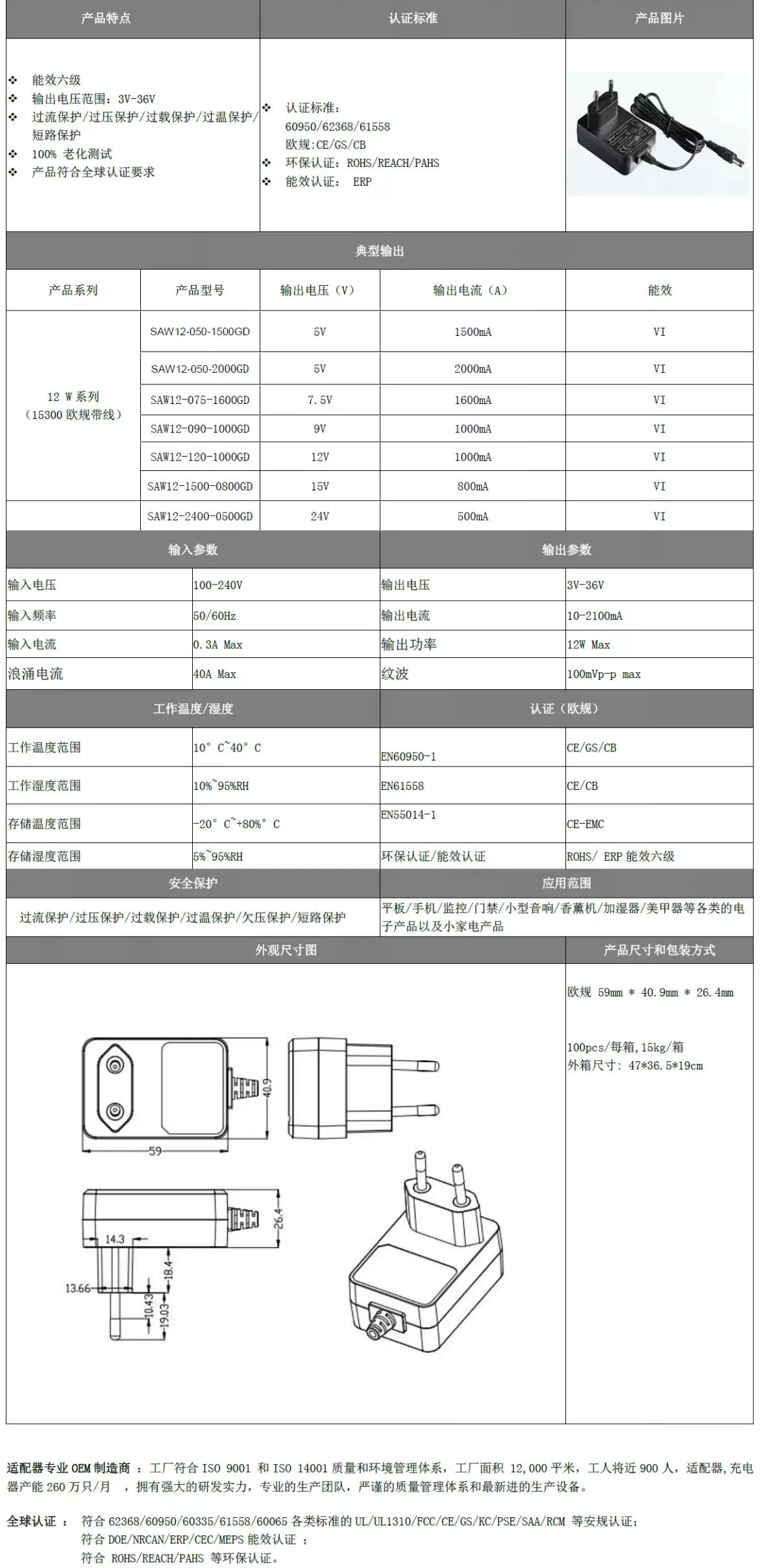插墙式电源适配器 15300 (12w 系列) 15300-欧规